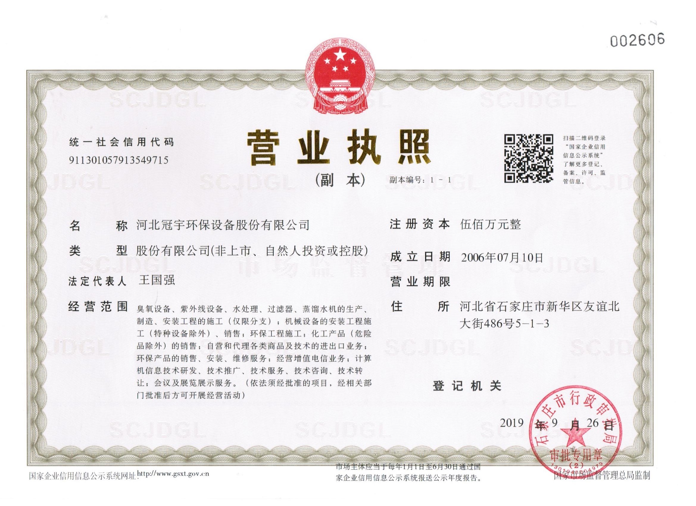 河北冠宇环保设备股份有限公司 地址: 河北省石家庄市新华区友谊北大街486号5-1-3 技术支持: