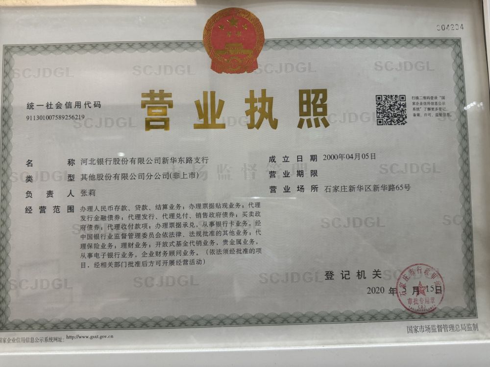 河北银行股份有限公司新华东路支行 地址: 河北省石家庄市新华区新华路65号河北银行新华东路支行 技术支持: